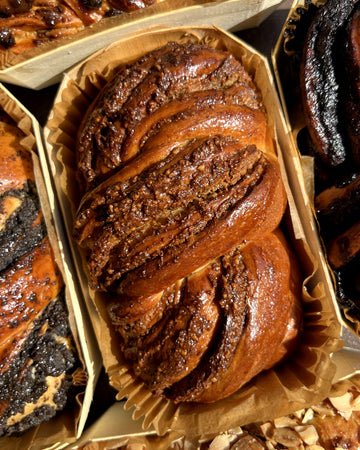 The beloved braided dessert from Eastern Europe is cherished worldwide for its rich, sweet dough - 0carefully stretched, filled with decadent ingredients, and braided into its signature oblong shape. At Piața9, we treat the dough with the utmost care, using only the finest butter, eggs, and cream to create a soft, tender interior and a golden, crisp crust. Inspired by world-renowned pastry chefs, we’ve crafted intricate variations of Babka that we are truly proud of - both for ourselves and for the passionate Babka lovers who have become loyal fans, and for good reason.
