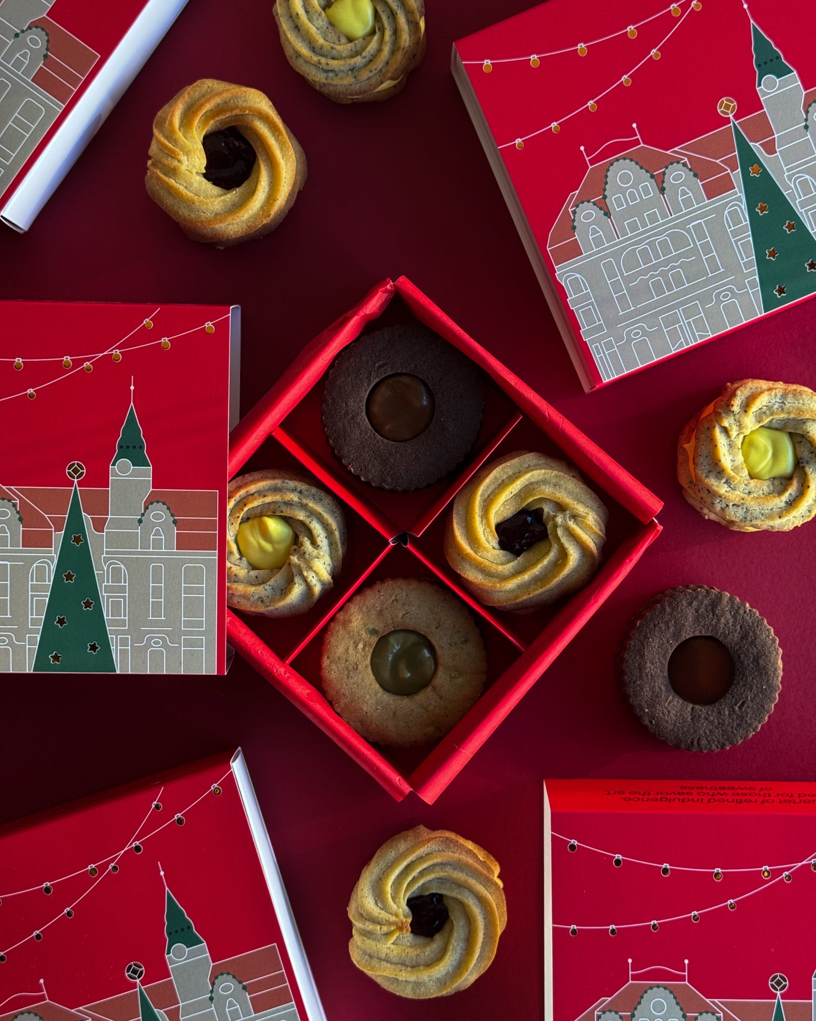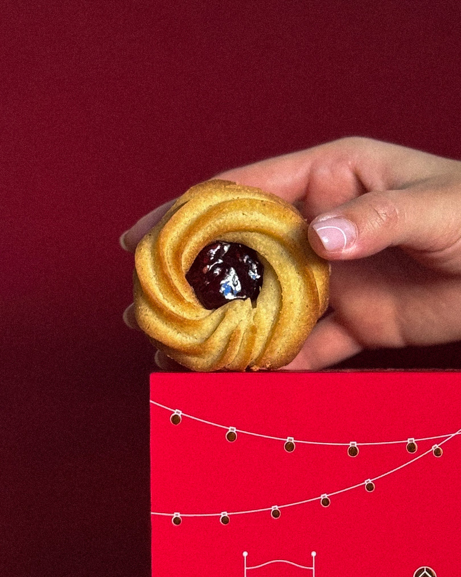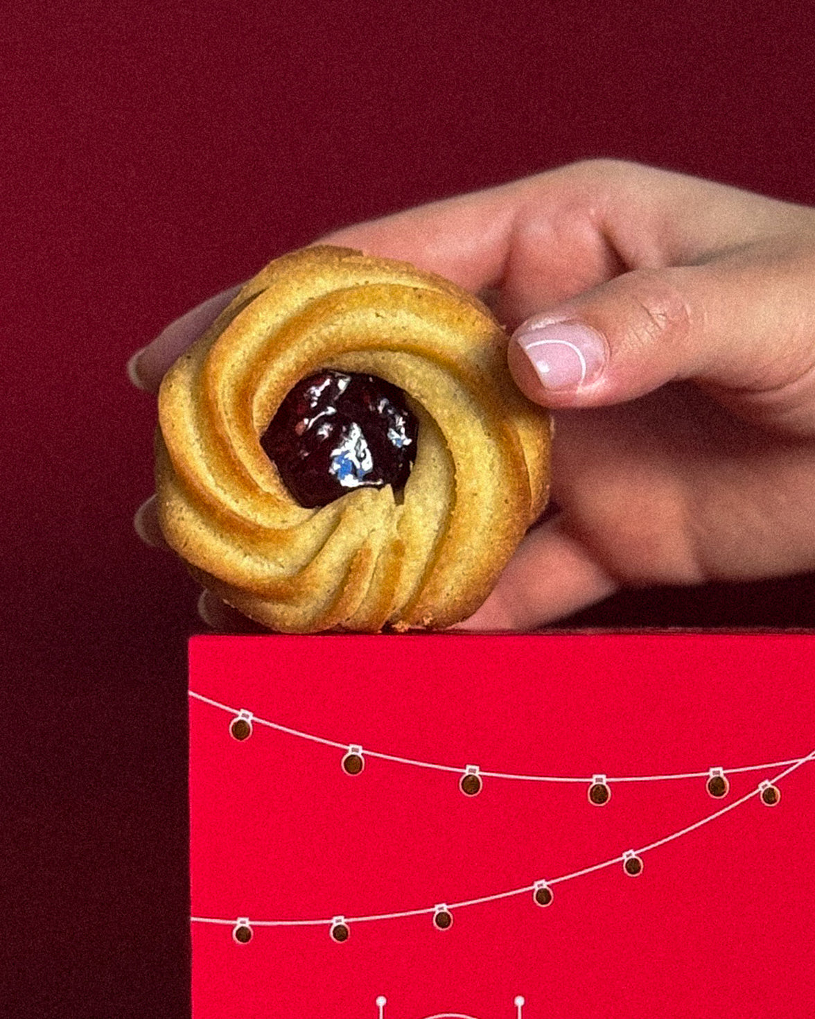 Each cookie in the Cookie Box is shaped and filled by hand, then baked slowly until it reaches the perfect golden color. The delicate texture, pure flavors, and balance between butter, cream, and fruit turn every bite into a small moment of joy — the kind that makes you slow down and savor it.