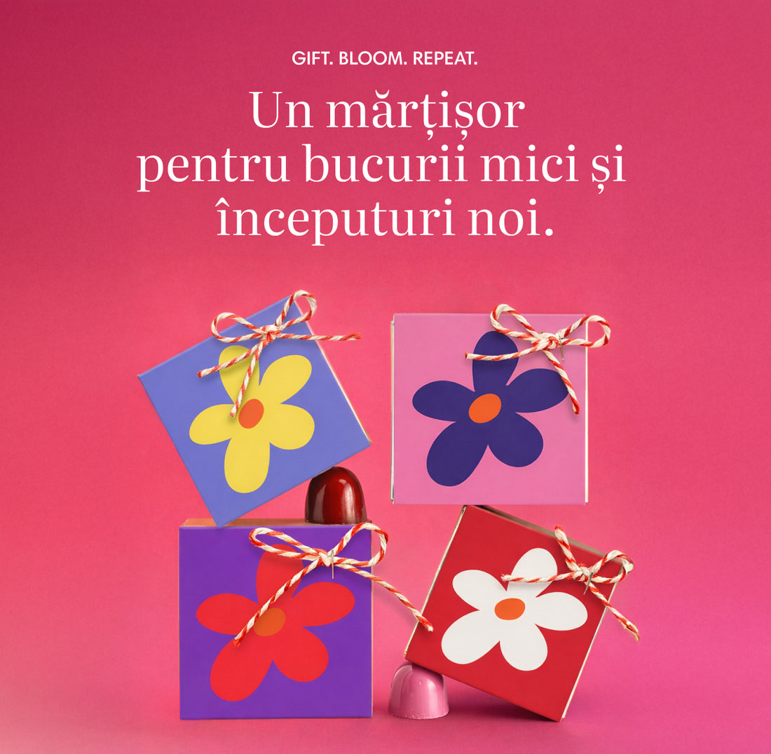Am pus în fiecare cutie câte o emoție diferită, de la energie și inspirație, până la răsfăț și stare de bine, ca tu să găsești exact gustul de care ai nevoie. Mărțișorul nostru este despre bucuria de a fi și despre plăcerea care se topește lent, amintindu-ne că viața e făcută din nenumărate începuturi frumoase.