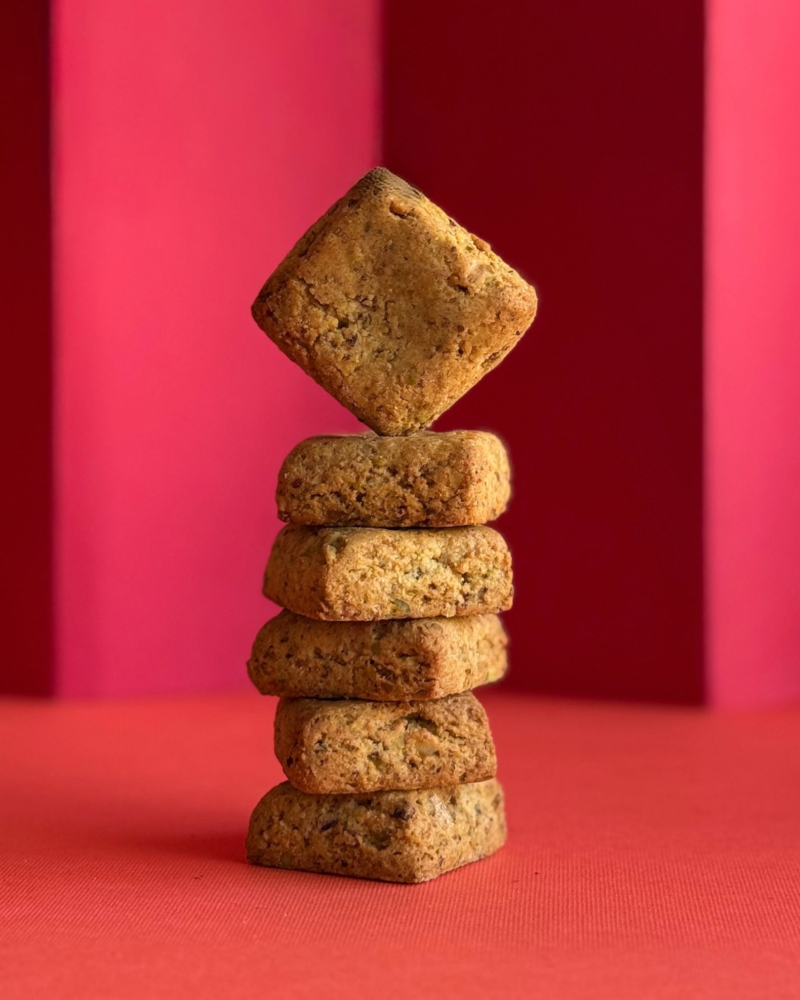 Experimentează lipsa ezitării și bucuria sinceră, cu aceste mici fursecuri festive. Un fursec dens, în formă de semilună, care îți delectează papilele gustative la fiecare mușcătură. Mierea, fisticul și apa de trandafiri îndulcesc subtil fiecare fursec fraged, sfărâmicios.