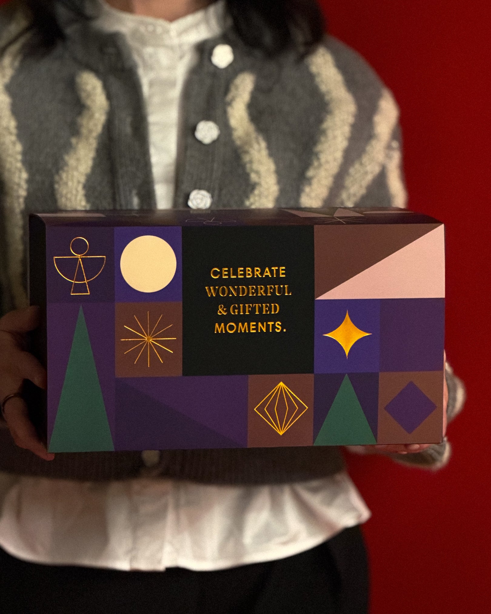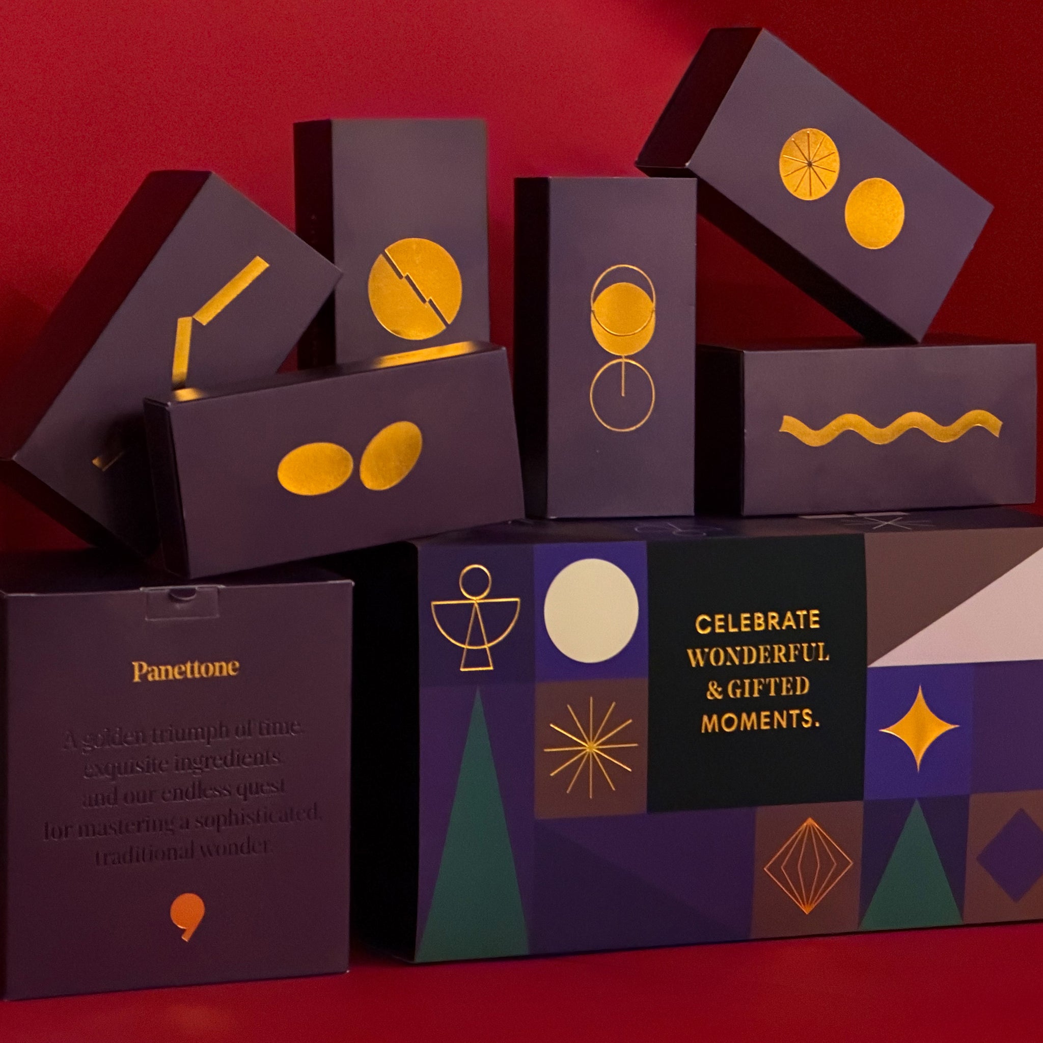 Aluat Panettone (Faina de GRAU, apa, OUA, UNT, zahar, ciocolata cu LAPTE (Zahar 42%, unt de cacao24%, LAPTE praf integral, masa de cacao, emulgator: lecitina din SOIA, aroma naturala de vanilie.), ciocolata Jivara ( zahar, unt de cacao, LAPTE praf integral, boabe de cacao, zahar brun, emulsificator (lecitina de SOIA), aroma naturala de vanilie, extract de malt BARLEY), ciocolata alba (zahar 42,9%, unt de cacao 35,0%, LAPTE praf integral 21,5%, emulsificator (lecitina de SOIA) 0,5%, extract natural de vanilie 0,02%), miere, sare, enzime, arome: portocala, vanilie, lamaie.), glazura (Zahar, faina de MIGDALE, apa, amidon din porumb), zahar granulat.