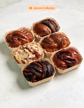 Aluat cozonac (Făină de GRÂU, UNT, OUĂ, LAPTE, drojdie, sare), Umplutură de mere (27.65%)(mere, zahăr, UNT, scorțișoară), făină de MIGDALE (11%), zahăr, scorțișoară, pastă de vanilie (Sirop de glucoză, sirop de zahăr invertit, sirop de fructoză, extract de coajă de vanilie pudră, aromă naturală de vanilie bourbon, concentrate (dovleac, morcov), acidifiant: acid citric (E330)), cardamom măcinat, esență de rom.