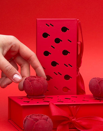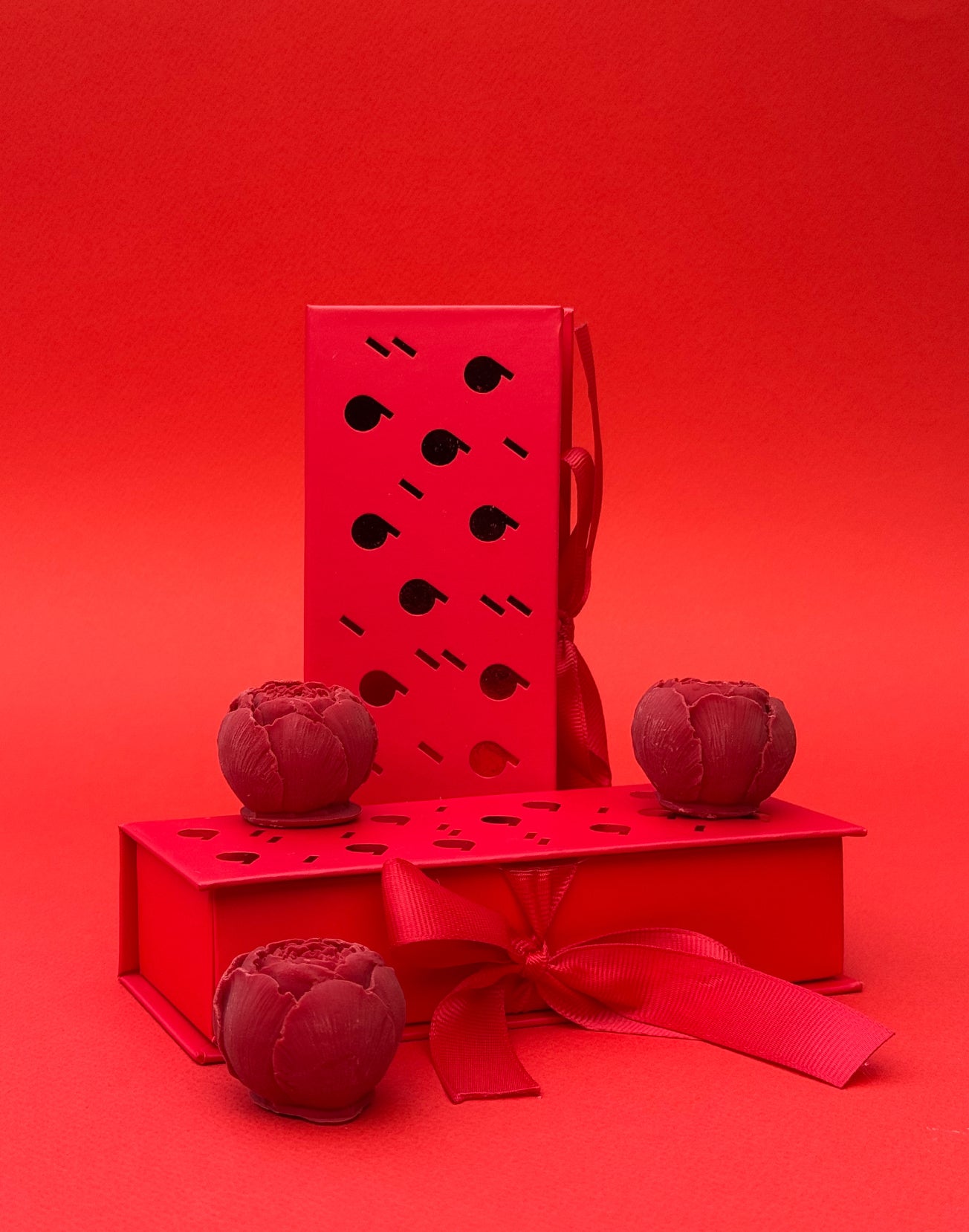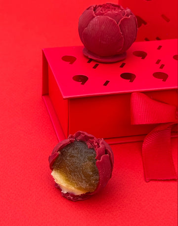 Pralină handmade din ciocolată belgiană, cu umplutură fină de mere verzi și bergamotă parfumată, pe o bază delicată de biscuite din migdale și vanilie.