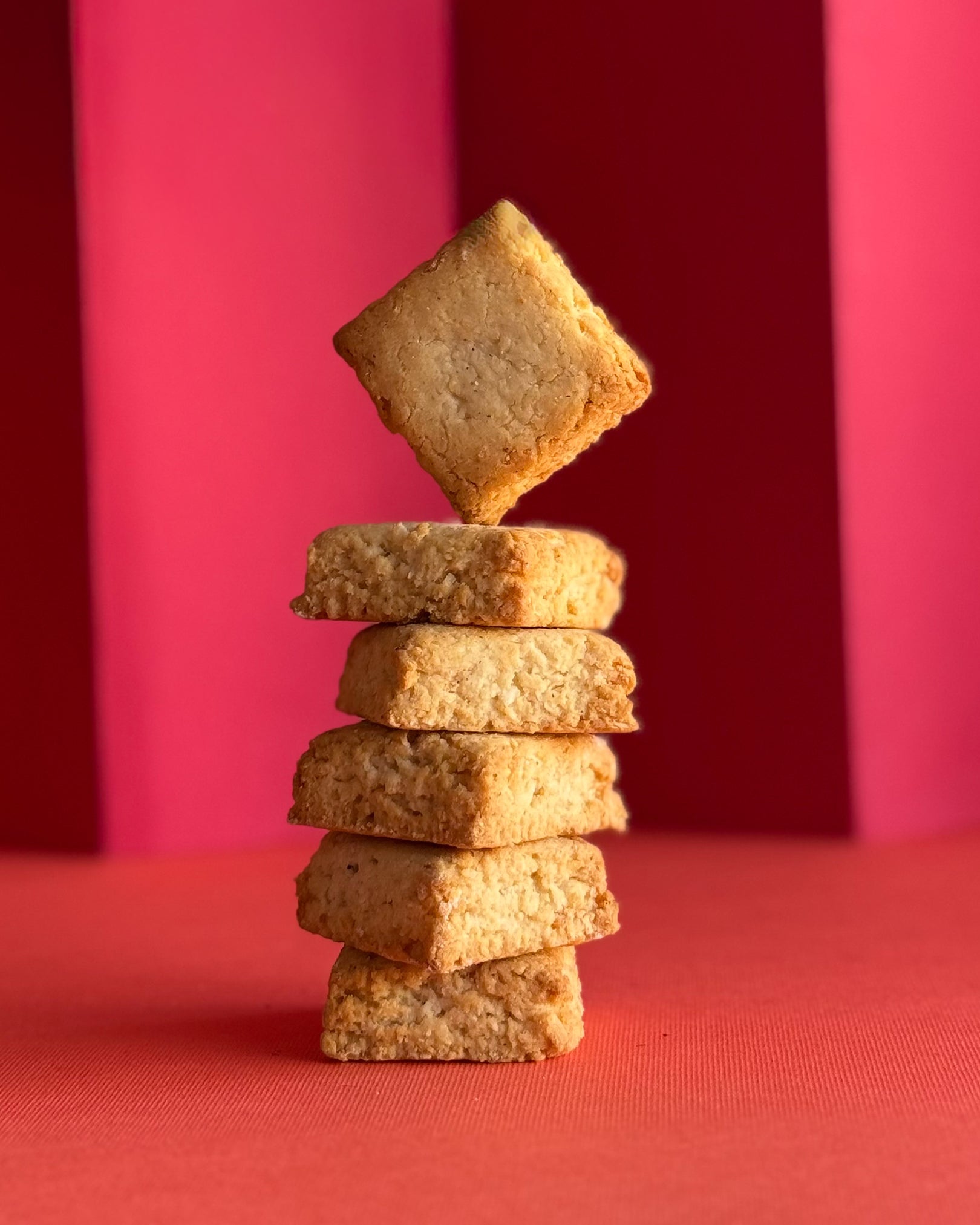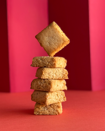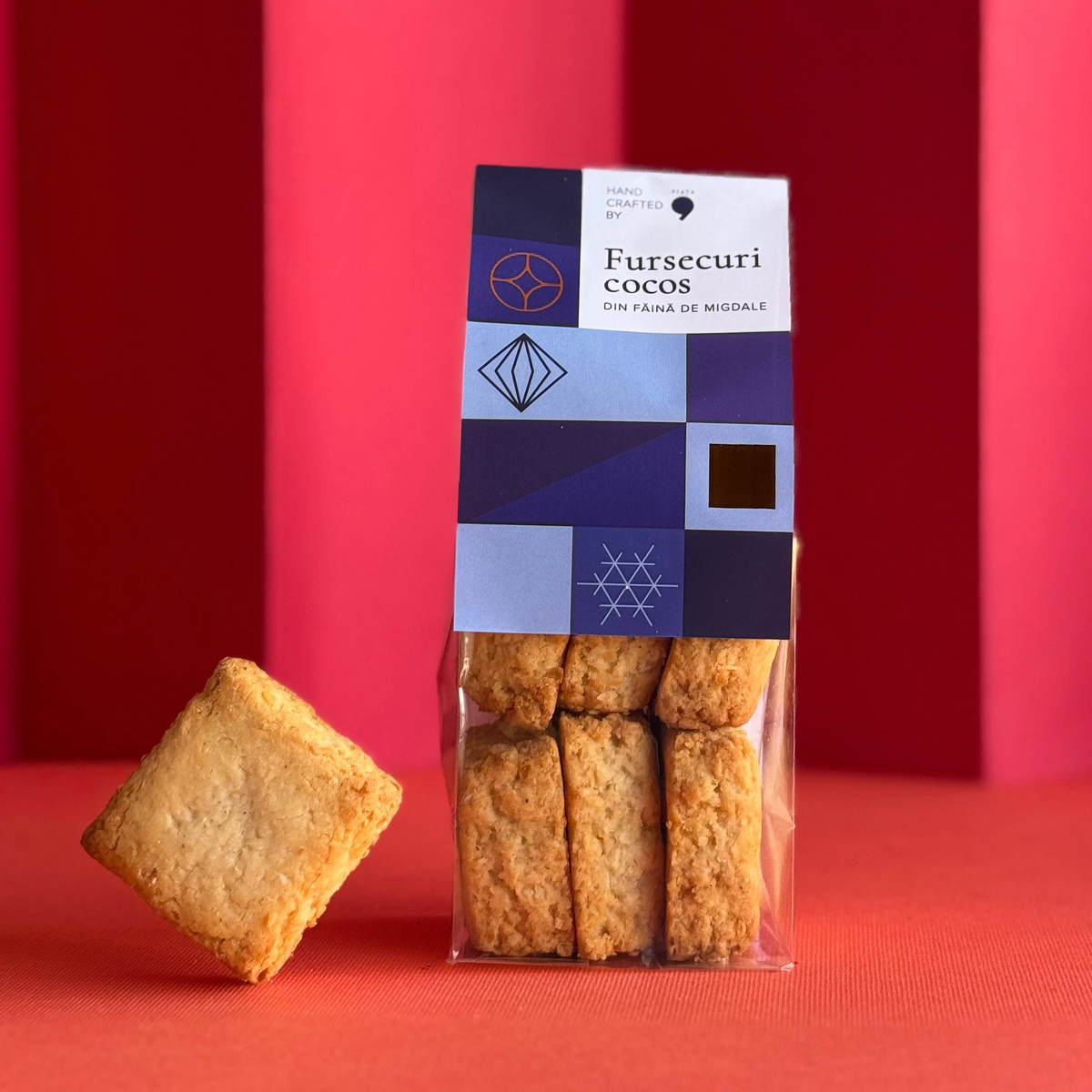 Descoperă deliciul exotic al fursecurilor noastre cu cocos, realizate din ingrediente curate, făra gluten: făină de migdale pentru o textură fină, ulei de cocos pentru aromă delicată și fulgi de cocos pentru o textura crocantă