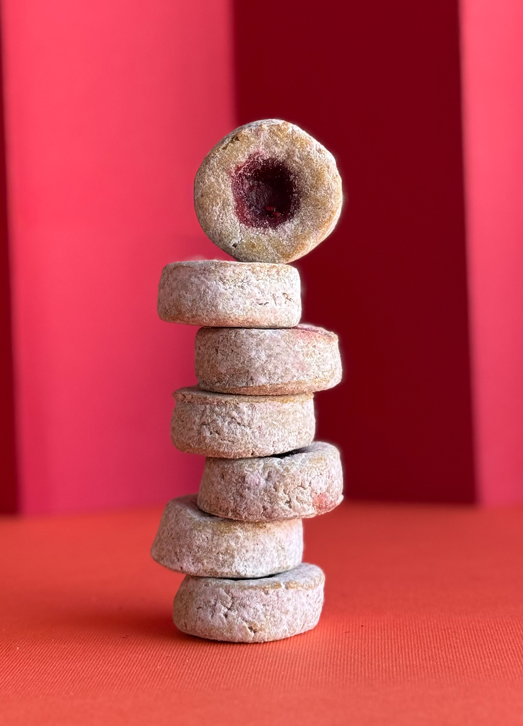 O scrisoare de dragoste pentru zmeură, transpusă cu pricepere în fursecul perfect. Făina de migdale, oul, mierea și tot ce e bun și dulce-acrișor pe lumea asta, sau cel puțin în lumea patiseriei. Piureul de zmeură, zmeura liofilizată, uleiul de lămâie se îmbrățișează necontenit într-un fursec rotund. Cercul perfect pe care toți îl căutăm.